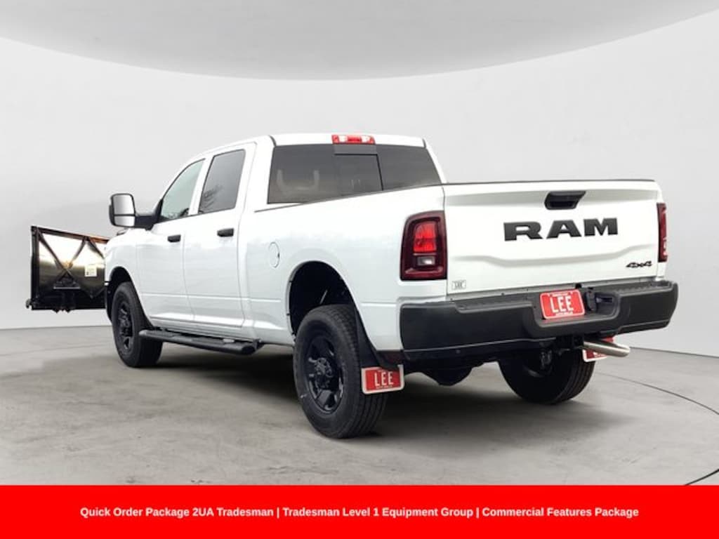 White 2026 Ram 2500 Tradesman 4WD 8-Speed Automatic 6.4L V8 UPFIT, PLOW UPFIT, 12" Touchscreen Display, 400W Inverter, 4G LTE Wi-Fi Hot Spot, Apple CarPlay, Auto-Dimming Rear-View Mirror, Bed Convenience Group, Clearance Lamps, Commercial Features Package, Connectivity - US/Canada, Disassociated Touchscreen Display, Emergency Vehicle Alert System (EVAS), Exterior 115V AC Outlet, For Details, Visit DriveUconnect.com, For More Info, Call 800-643-2112, Google Android Auto, GPS Antenna Input, GPS Navigation, HD Radio, LED Bed Lighting, Off-Road Info Pages, Quick Order Package 2UA Tradesman, Rear Power Sliding Window, Selectable Tire Fill Alert, SiriusXM Radio Service, Tinted Acoustic Windshield Glass, Tradesman Level 1 Equipment Group, Trailer Tow Pages.