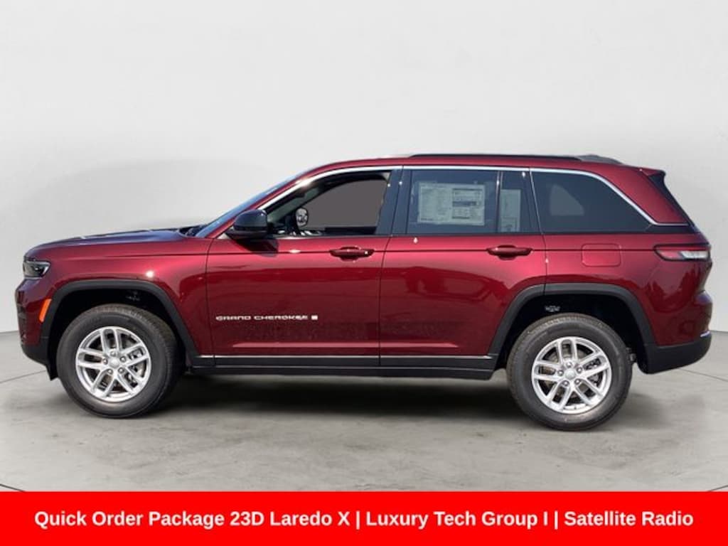 Velvet Red Pearlcoat 2025 Jeep Grand Cherokee Laredo X 4WD 8-Speed Automatic 3.6L V6 24V VVT 4WD, 115V Auxiliary Power Outlet, Alloy wheels, Automatic temperature control, Four wheel independent suspension, Front Bucket Seats, Front dual zone A/C, Fully automatic headlights, Heated Front Seats, Heated Steering Wheel, Laredo X, Luxury Tech Group I, ParkView Rear Back-Up Camera, Power driver seat, Power Liftgate, Power Sunroof, Quick Order Package 23D Laredo X, Radio: Uconnect 5 w/8.4" Display, Rain Sensitive Windshield Wipers, Remote keyless entry, Remote Start System, Satellite Radio, Secondary Active Grille Shutters, Selectable Tire Fill Alert, Steering wheel mounted audio controls, Telescoping steering wheel, Wheels: 18" x 8" Fully Painted Aluminum, Wireless Charging Pad. Priced below KBB Fair Purchase Price!