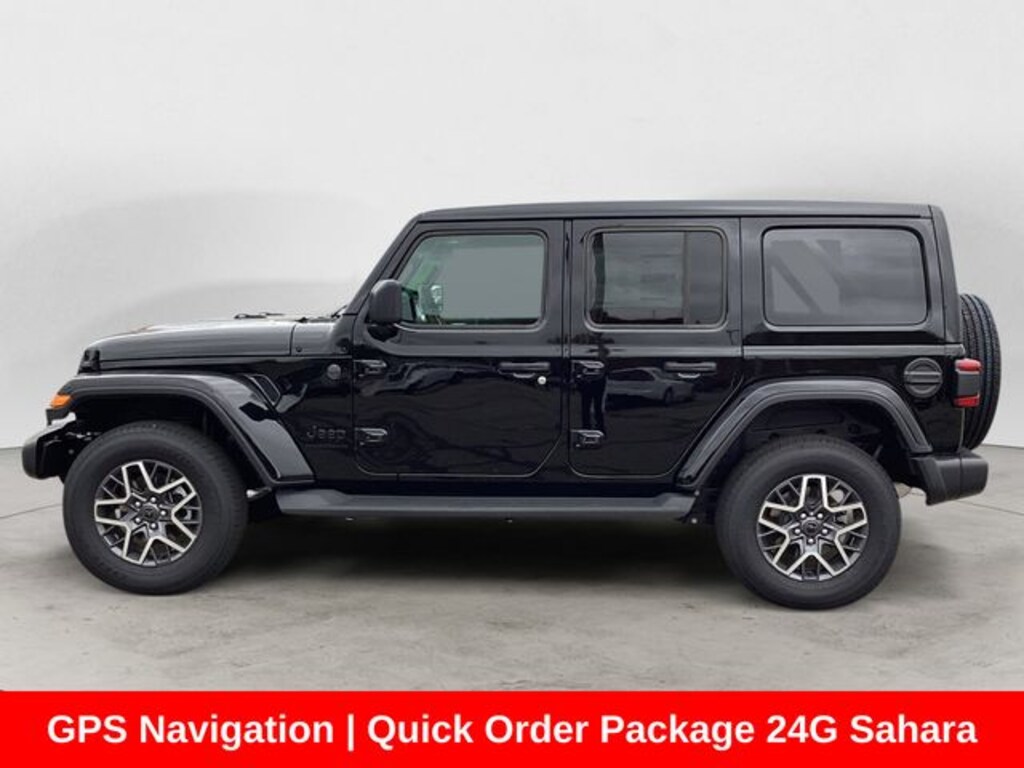 Black Clearcoat 2025 Jeep Wrangler Sahara 4WD 8-Speed Automatic 3.6L V6 24V VVT 12.3" Touchscreen Display, 4G LTE Wi-Fi Hot Spot, Apple CarPlay, Auto High Beam Headlamp Control, Auto-Dimming Rear-View Mirror, Automatic temperature control, Blind Spot & Cross Path Detection, Connected Travel & Traffic Services, Connectivity - US/Canada, Google Android Auto, GPS Navigation, HD Radio, Integrated Off-Road Camera, Integrated Voice Command w/Bluetooth, ParkSense Rear Park Assist System, Quick Order Package 24G Sahara, Radio: Uconnect 5 Nav w/12.3" Display, Safety Group, SiriusXM Radio Service, SiriusXM w/360L, Technology Group, Universal Garage Door Opener.