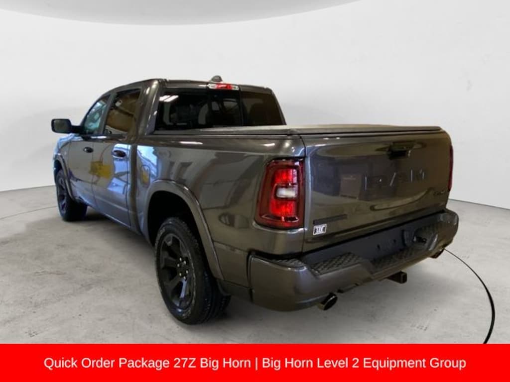 115V Auxiliary Power Outlet, 115V Auxiliary Rear Power Outlet, 12" Touchscreen Display, 2nd Row in Floor Storage Bins, 3 Rear Seat Head Restraints, 4 Way Front Headrests, 400W Inverter, 4G LTE Wi-Fi Hot Spot, 9 Amplified Speakers with Subwoofer, Accent Color Door Handles, Accent Color Premium Power Mirrors, Accent Color Tailgate Handle, Air Conditioning ATC with Dual Zone Control, Anti-Spin Differential Rear Axle, Apple CarPlay, Auto Power-Folding Mirrors, Auto-Dimming Exterior Driver Mirror, Auto-Dimming Rear-View Mirror, Big Horn Level 2 Equipment Group, Black Exterior Mirrors, Black Exterior Truck Badging, Black Headlamp Bezels, Black Interior Accents, Black Painted Exterior Mirrors Caps, Black Premium Power Mirrors, Black Tail Lamp Bezels, Body Color Fender Flares, Body Color Front Bumper, Body Color Rear Bumper with Step Pads, Bucket Seats, Center Console Parts Module, Cluster 7.0" TFT Color Display, Configurable Drive Mode, Connected Travel and Traffic Services, Connectivity - US/Canada, Convex Wide-Angle Exterior Mirror Insert, Deluxe Cloth Bucket Seats, Disassociated Touchscreen Display, Dual Exhaust with Black Tips, Exterior Mirrors Courtesy Lamps, Exterior Mirrors with Heating Element, Exterior Mirrors with Supplemental Signals, Front Seat Back Map Pockets, Full Length Floor Console, Global Telematics Box Module, Glove Box Lamp, Google Android Auto, GPS Antenna Input, GPS Navigation, Grille Black Surround Black Mesh, HD Radio, Heated Front Seats, Heated Steering Wheel, Integrated Center Stack Radio, Integrated Voice Command with Bluetooth, Leather Wrapped Steering Wheel, LED Dome Lamp with on/Off Switch, LED Footwell Lighting, Manual Adjust 4-Way Front Passenger Seat, Media Hub with 2 Charge Only USBs, Night Edition, Overhead LED Lamps, ParkView Rear Back-Up Camera, Power 2-Way Driver Lumbar Adjust, Power Adjust 8-Way Driver Seat, Power Adjustable Pedals, Premium Overhead Console, Quick Order Package 23Z Big Horn, Quick Order Package 27Z Big Horn, Radio: Uconnect 5 Navigation with 12.0" Display, RAM Grille Badge - Black, Rear 60/40 Folding Seat, Rear Center Armrest, Rear Power Sliding Window, Rear Window Defroster, Remote Tailgate Release, Security Alarm, SiriusXM Radio Service, SiriusXM with 360L, Steering Wheel Mounted Audio Controls, Sun Visors with Illuminated Vanity Mirrors, Universal Garage Door Opener, USB Host Flip, Wheels: 20" x 9.0" Aluminum Painted Clad, Wheels: 20" x 9" Aluminum Chrome Clad.
