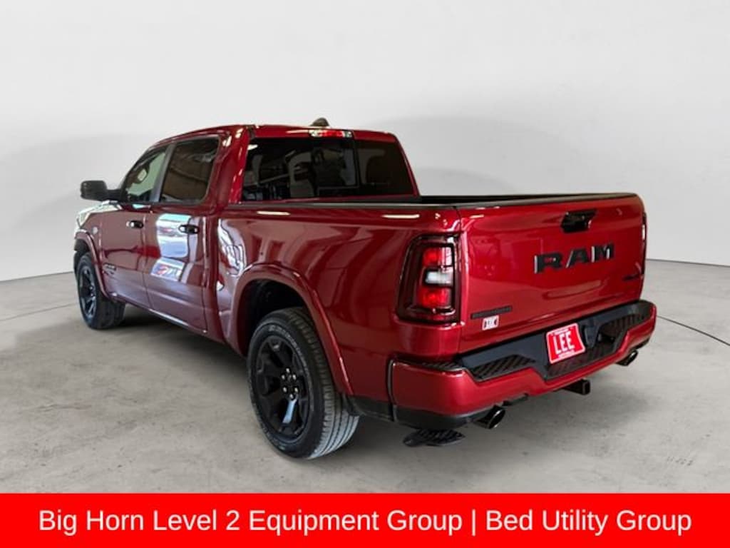 115V Auxiliary Power Outlet, 115V Auxiliary Rear Power Outlet, 12" Touchscreen Display, 2nd Row in Floor Storage Bins, 3 Rear Seat Head Restraints, 4 Way Front Headrests, 400W Inverter, 4G LTE Wi-Fi Hot Spot, 9 Amplified Speakers with Subwoofer, Accent Color Door Handles, Accent Color Premium Power Mirrors, Accent Color Tailgate Handle, Air Conditioning ATC with Dual Zone Control, Anti-Spin Differential Rear Axle, Apple CarPlay, Auto Power-Folding Mirrors, Auto-Dimming Exterior Driver Mirror, Auto-Dimming Rear-View Mirror, Bed Utility Group, Big Horn Level 2 Equipment Group, Black Exterior Mirrors, Black Exterior Truck Badging, Black Headlamp Bezels, Black Interior Accents, Black Painted Exterior Mirrors Caps, Black Premium Power Mirrors, Black Tail Lamp Bezels, Body Color Fender Flares, Body Color Front Bumper, Body Color Rear Bumper with Step Pads, Bucket Seats, Center Console Parts Module, Cluster 7.0" TFT Color Display, Configurable Drive Mode, Connected Travel and Traffic Services, Connectivity - US/Canada, Convex Wide-Angle Exterior Mirror Insert, Deluxe Cloth Bucket Seats, Disassociated Touchscreen Display, Dual Exhaust with Black Tips, Exterior 115V AC Outlet, Exterior Mirrors Courtesy Lamps, Exterior Mirrors with Heating Element, Exterior Mirrors with Supplemental Signals, Front Seat Back Map Pockets, Full Length Floor Console, Global Telematics Box Module, Glove Box Lamp, Google Android Auto, GPS Antenna Input, GPS Navigation, Grille Black Surround Black Mesh, HD Radio, Heated Front Seats, Heated Steering Wheel, Integrated Center Stack Radio, Integrated Voice Command with Bluetooth, Leather Wrapped Steering Wheel, LED Dome Lamp with on/Off Switch, LED Footwell Lighting, Manual Adjust 4-Way Front Passenger Seat, Media Hub with 2 Charge Only USBs, MOPAR 4 Adjustable Cargo Tie-Down Hooks, MOPAR Spray in Bedliner, Night Edition, Overhead LED Lamps, ParkView Rear Back-Up Camera, Pick-Up Box Lighting, Power 2-Way Driver Lumbar Adjust, Power Adjust 8-Way Driver Seat, Power Adjustable Pedals, Premium Overhead Console, Quick Order Package 27Z Big Horn, Radio: Uconnect 5 Navigation with 12.0" Display, RAM Grille Badge - Black, Rear 60/40 Folding Seat, Rear Center Armrest, Rear Power Sliding Window, Rear Window Defroster, Remote keyless entry, Remote Tailgate Release, Security Alarm, SiriusXM Radio Service, SiriusXM with 360L, Steering Wheel Mounted Audio Controls, Sun Visors with Illuminated Vanity Mirrors, Universal Garage Door Opener, USB Host Flip, Wheels: 20" x 9.0" Aluminum Painted Clad, Wheels: 20" x 9" Aluminum Chrome Clad.